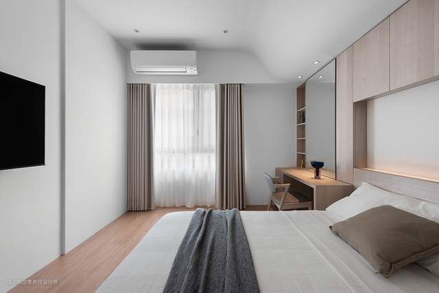 选择把电视背景墙改为书柜,解决了阅览室的问题,也不必想方设法装修背景墙了。