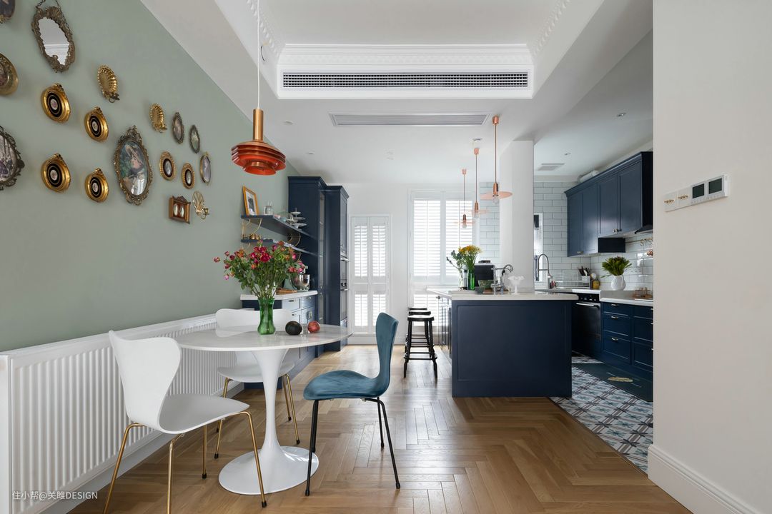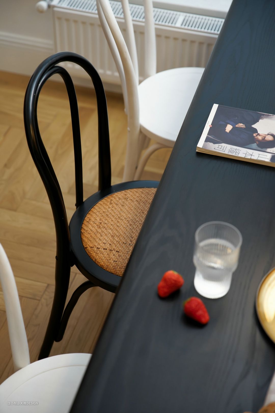 大餐厅放置了2米2的大长桌,之后的不停歇的家庭聚会,欢声笑语也都在这里。除了宴会,平常大长桌也是一家人一起做手工的地方。阳台的百叶窗,随时会有一束斜阳照在俏皮的猫咪身上。