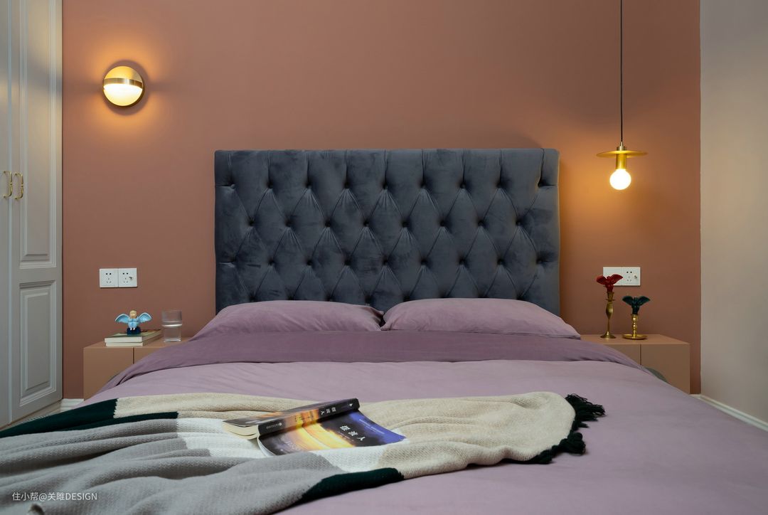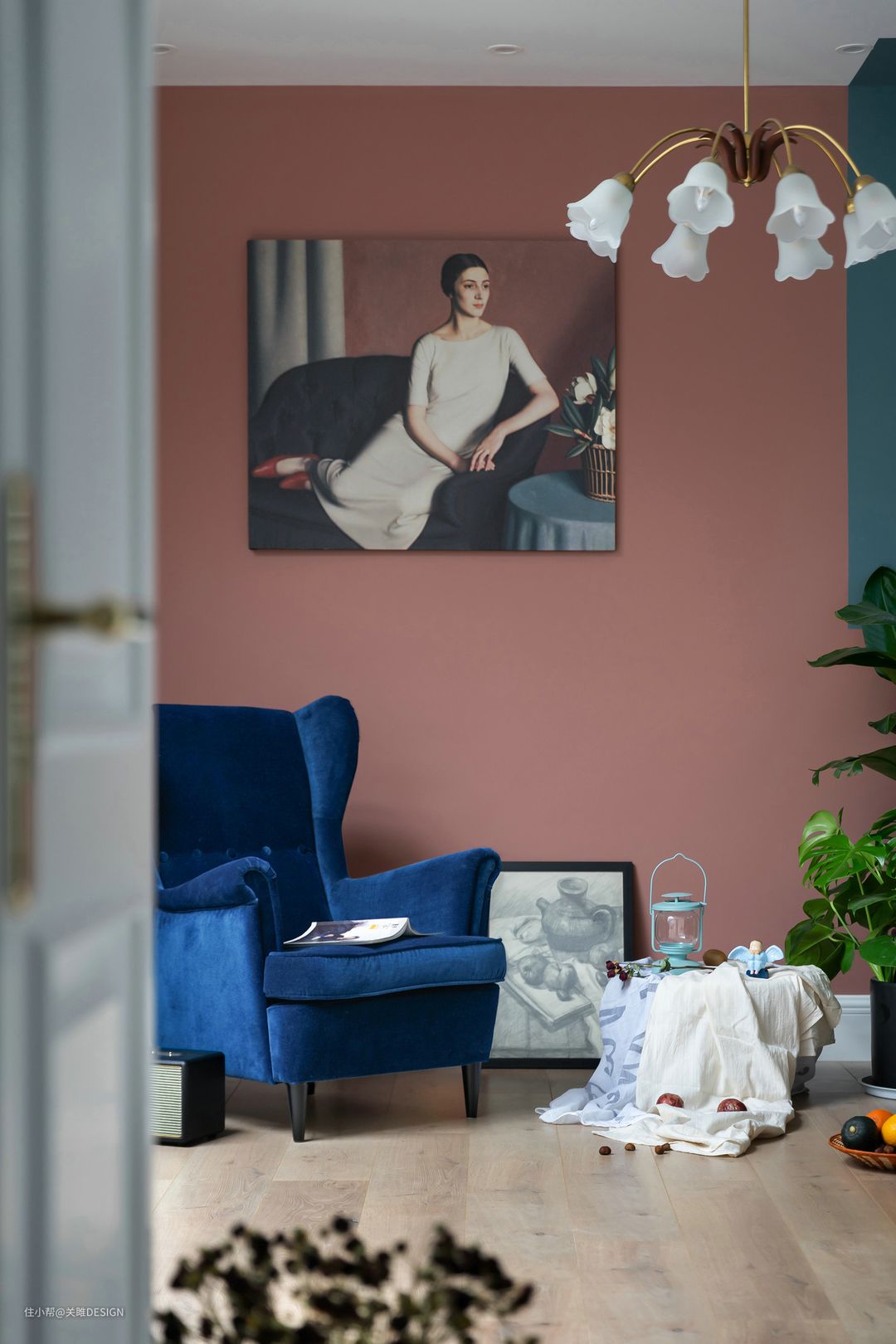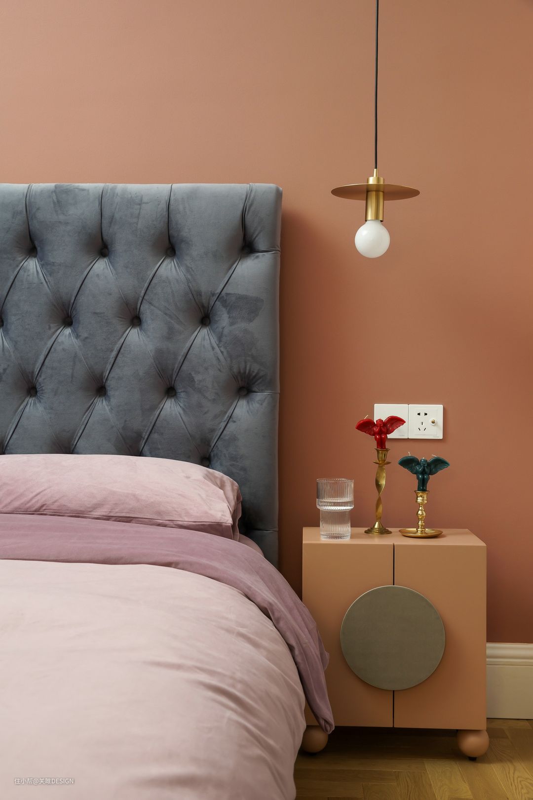 粉色的墙面和温暖灯芯绒质感,柔软的线条和斑驳摇曳的光影,让空间在无形中酝酿了一种悠然、平静的情绪。
