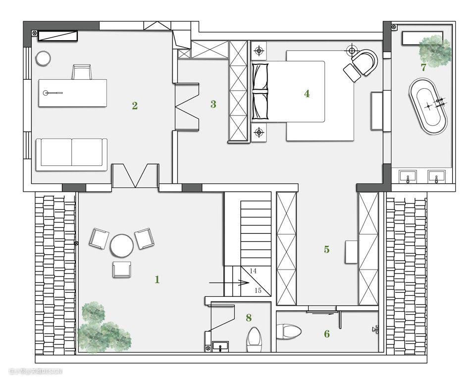 整个二楼我们给了甲方姐姐还有甲方哥哥规划了书房、衣帽间(男士女士空间分离)还有泡澡都能看星星晒月光的阳台浴室(无边泳池没有了 有个浴缸也是可以的吧 毕竟心中有海 哪里都是马尔代夫嘛)