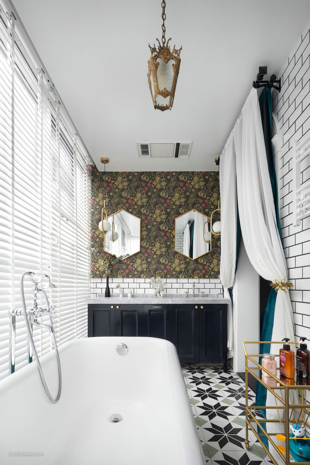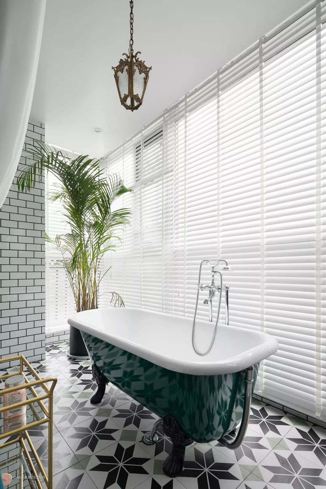 浴室的雨露,浸染着地面的花砖,盘桓在浴缸周围;地面的花砖也是让经过多次送样,最终确定了这款颜值超高地砖;