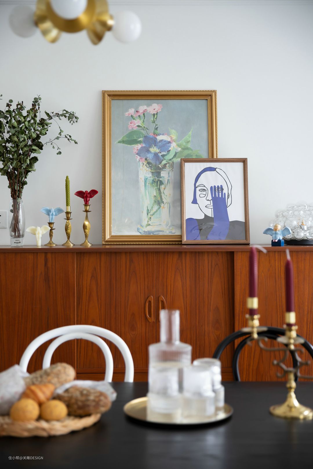 得一提的是,为了追求生活的质感,女主人在家具与装饰方面选择了海淘,中古的家具,复古的灯,几盏烛台,几面挂画无不处不心思。也只有如此热爱生活的人儿才能做到对物件的尽善美吧。