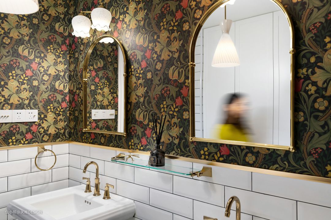 一楼的卫生间干区是开放的,较之大理石洗手台我们更中意复古的线条感的立盆。