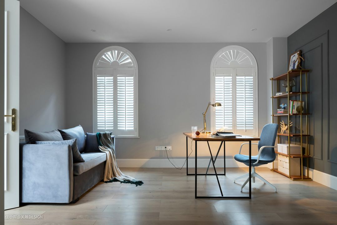 晚上偶尔在这里处理下事务,回复下朋友发的邮件,读完一本休闲的书籍,感受透过百叶窗的光影,时间在这里似乎变得慢悠起来,书不多,一架便是够的了。