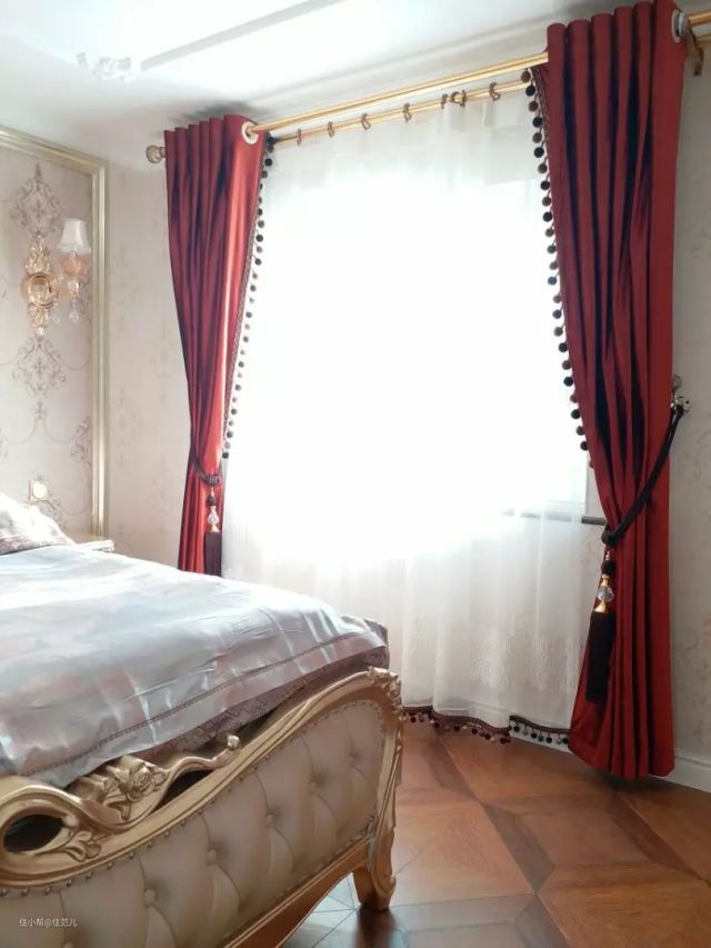 为了达到全遮光的效果,窗帘盒也是必不可少的道具。做双层窗帘的要先算好双层罗马杆/轨道的宽度再做窗帘盒,否则做小了就只能装一层窗帘。没装吊顶的,用石膏线沿墙面作出一圈挡板,在挡板内安装罗马杆或轨道。要是有吊顶,在窗边留出一个凹槽即可。这样装出来的效果就像小黑屋,从天黑睡到天黑都没问题。至于其他遮光度90%、95%的窗帘,根本不能叫做“全遮光窗帘”。要是想达到全遮光的效果,需要搭配遮光衬布使用。