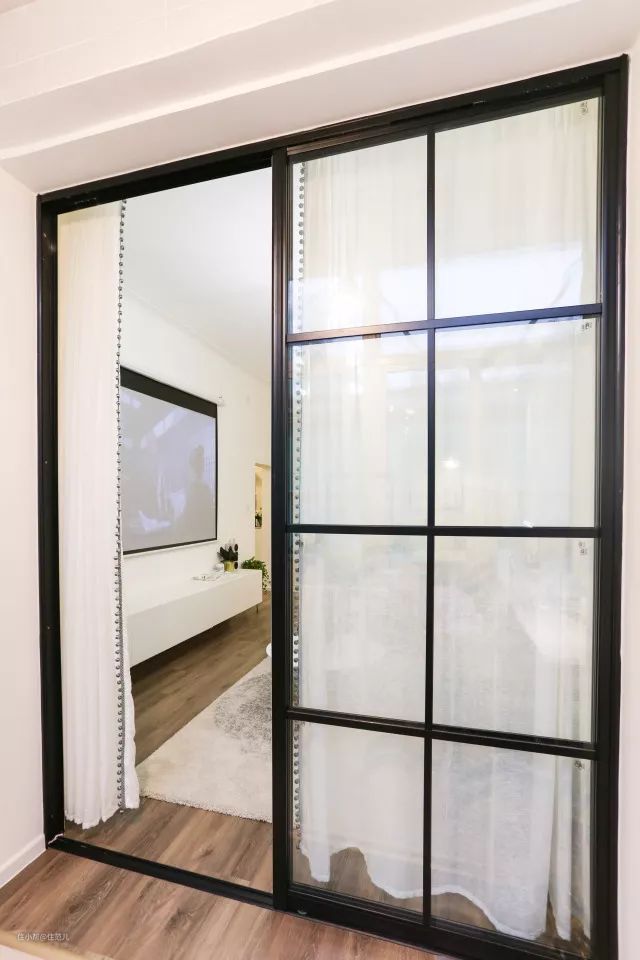 纱帘店铺我要pick两家,一家是我妈买过的「香芋谷色家居旗舰店」,现在还挂在我们家阳台上,非常好看。另一家是住范儿客户用过的「素锦原创布艺」,高贵典雅,配上住范儿的黑色细框玻璃门美极了。