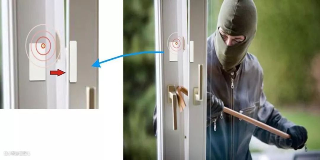 门窗磁是现在最常见的一种,原理是磁铁和干簧管分别安装在门框和门扇上,当离开一定距离,就会触发报警。