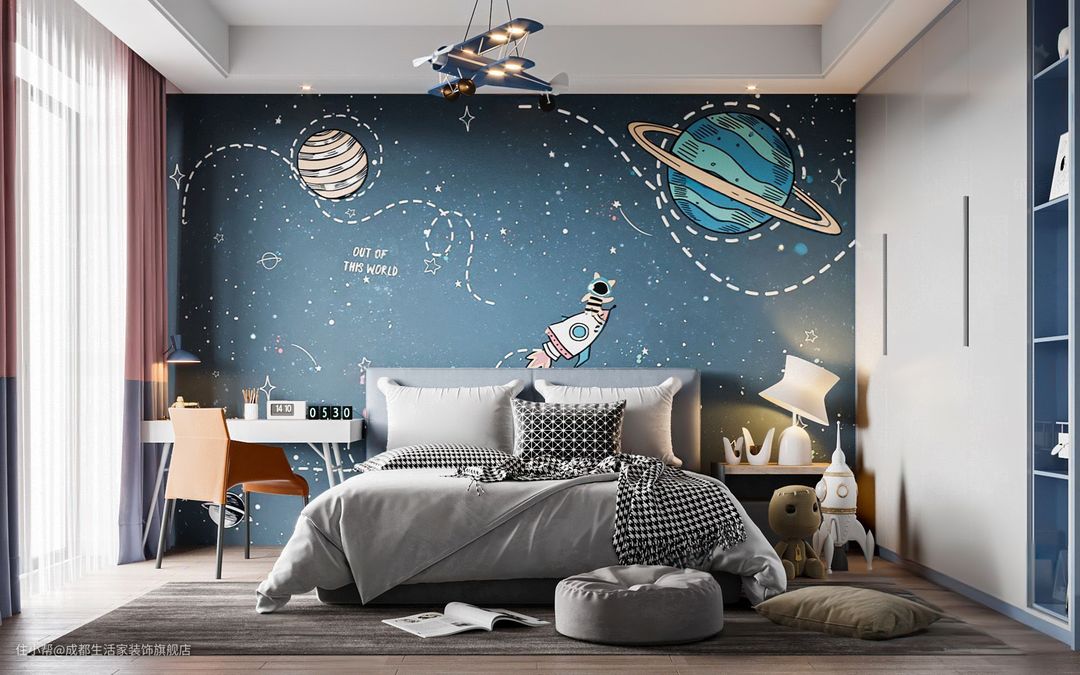 卧室色彩丰富的墙面,给孩子一个健康的生活氛围。