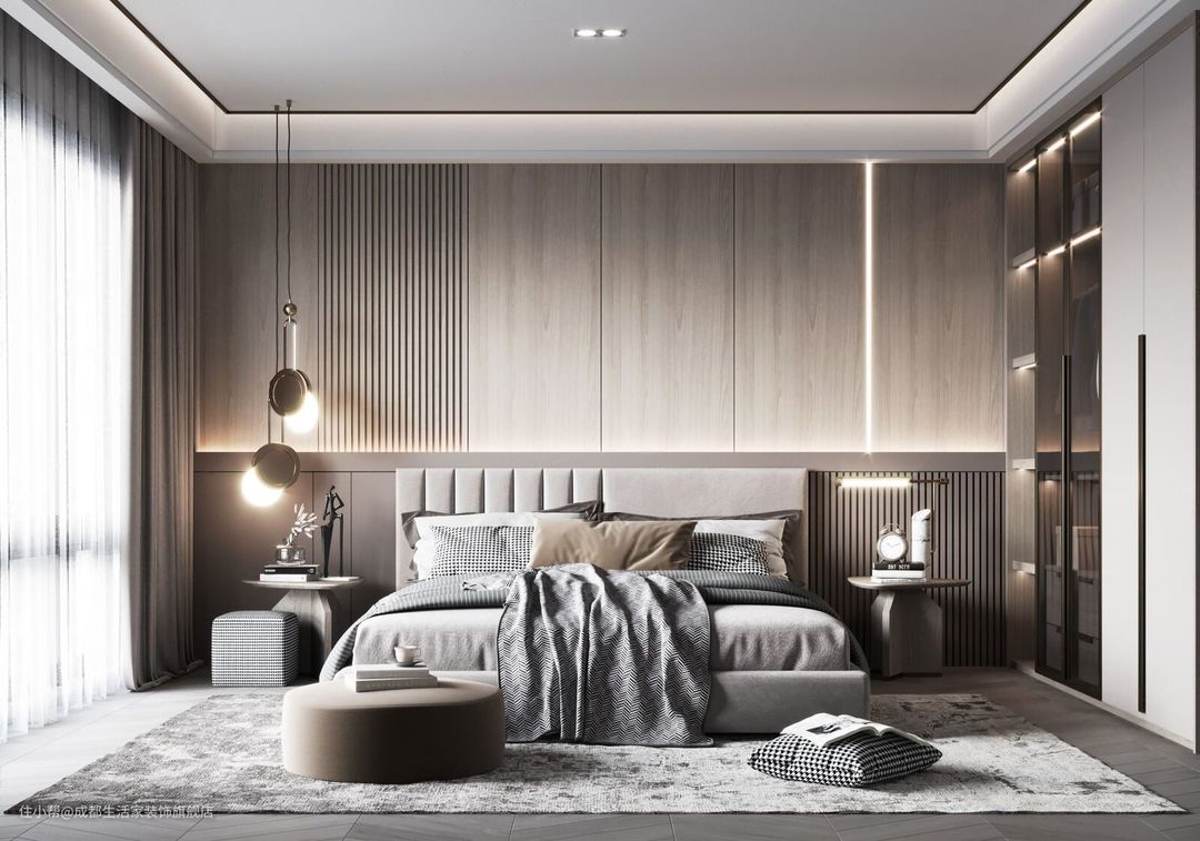 卧室极简的氛围灯,营造出现代人追求的简单生活。