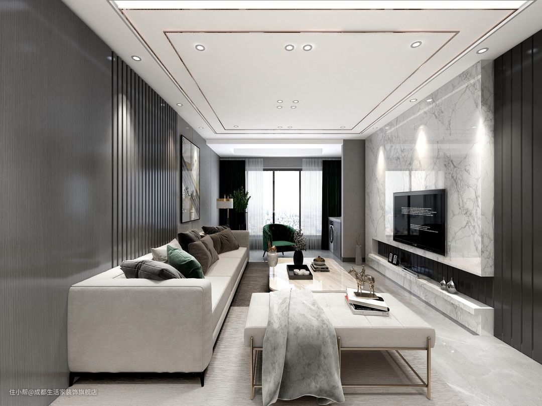 客厅整体比较调和的高级灰,可是事实上“高级灰”并真不是灰色,它指的是色彩的低纯度