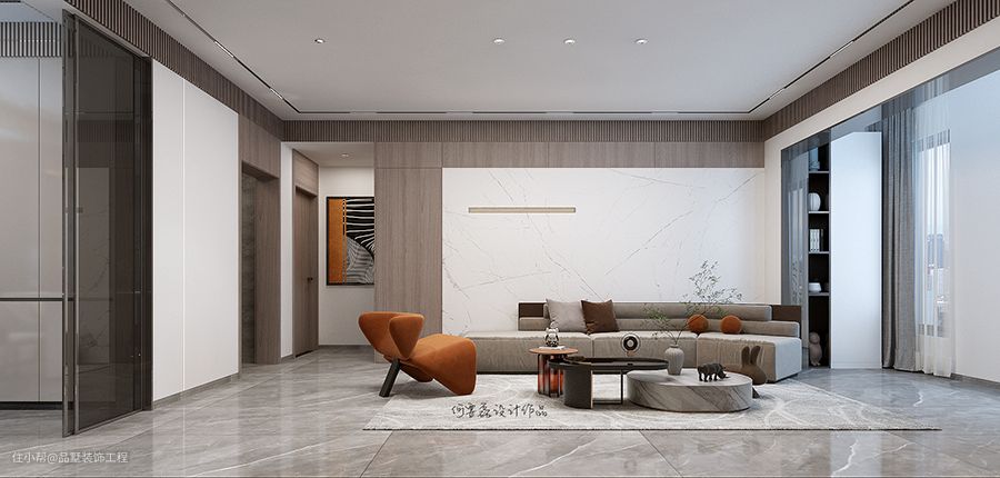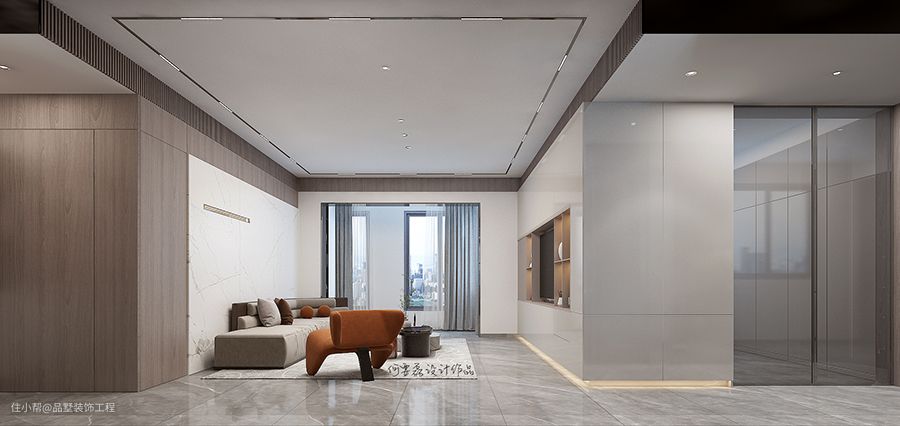 设计说明:该案例业主是位时尚的小姐姐。喜欢简简单单,不喜欢复杂的造型曲线和跳跃的色彩,整体想体现出来成熟稳重。港式轻奢:以简约风格为基础,融合了ins风的地色彩饱和度、对比度、色温、增加曝光度,再融合港式风格黑白灰的背景特点,整体体现出低调奢华有内涵,融合的不仅仅是色彩、材质,更是将东西方美学的精髓融合到一起。
