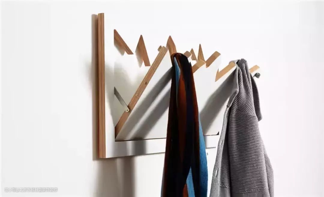 这一款是曲线型的壁挂柜,也是一个很有创意的衣帽架,打开柜门,山峰上的尖顶恰好可以用好挂挂衣物、围巾、包包等物。