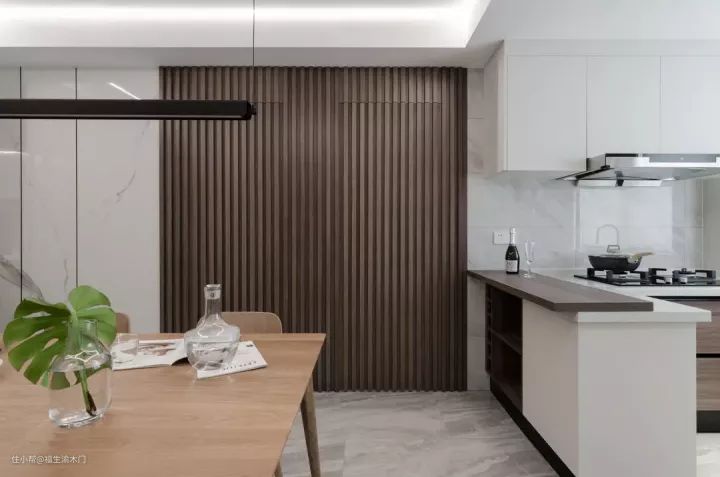 很多装格栅隐形门的客户,也并不是因为先喜欢上这种装修风格再选择的,而是在很多时候,主要是为了保证整个背景墙的完整性,避免一扇门显得太过突兀。还有就是为了避免一些风水忌讳的问题,比如门对门。