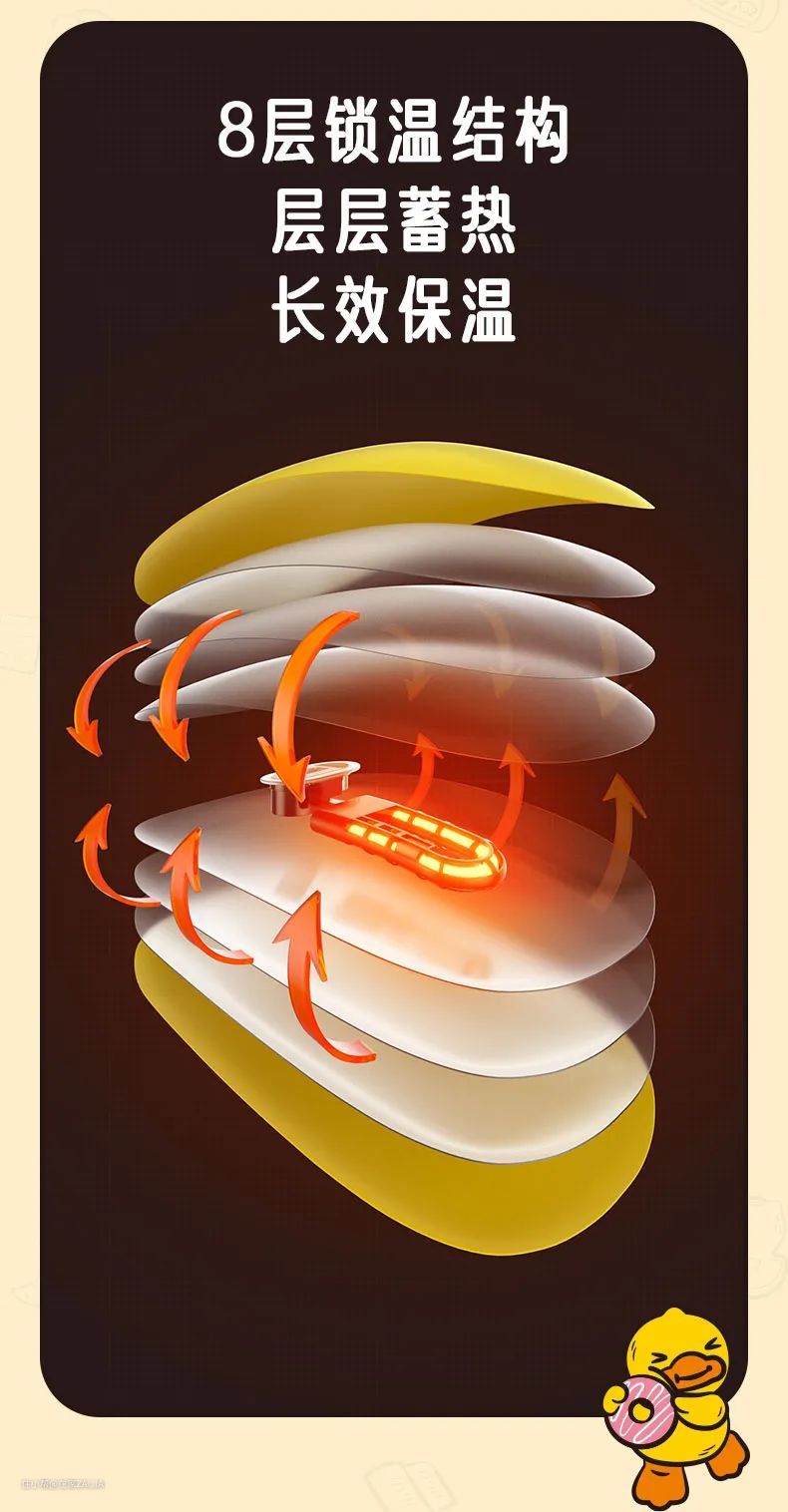 多种材料各自发挥,层层搭配,均匀且缓慢的释放热量,放在被子里最长能保温8个小时,整整一个晚上!