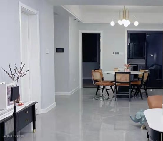 当墙面与地面颜色差距过大,视觉上产生不协调的感觉时,可以选用颜色合适的踢脚线实现对墙面与地面的过度与衔接,提高美观性。
