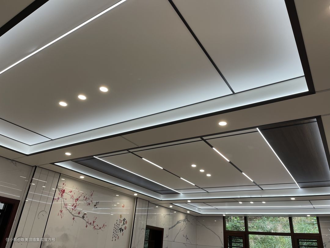 公共客厅:大板吊顶+嵌入式筒灯+嵌入式灯带