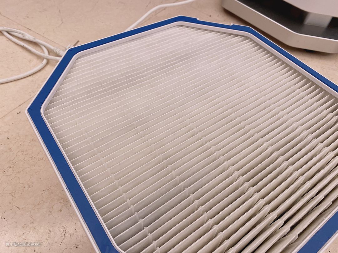 ▲而且光看HEPA滤网的高度、大小尺寸,就可以大概感受到滤网的展开面积绝对小不了,我看了下广宣有5㎡呢。面积越大,容尘率越高,吸附的颗粒物越多,自然净化效果越高。