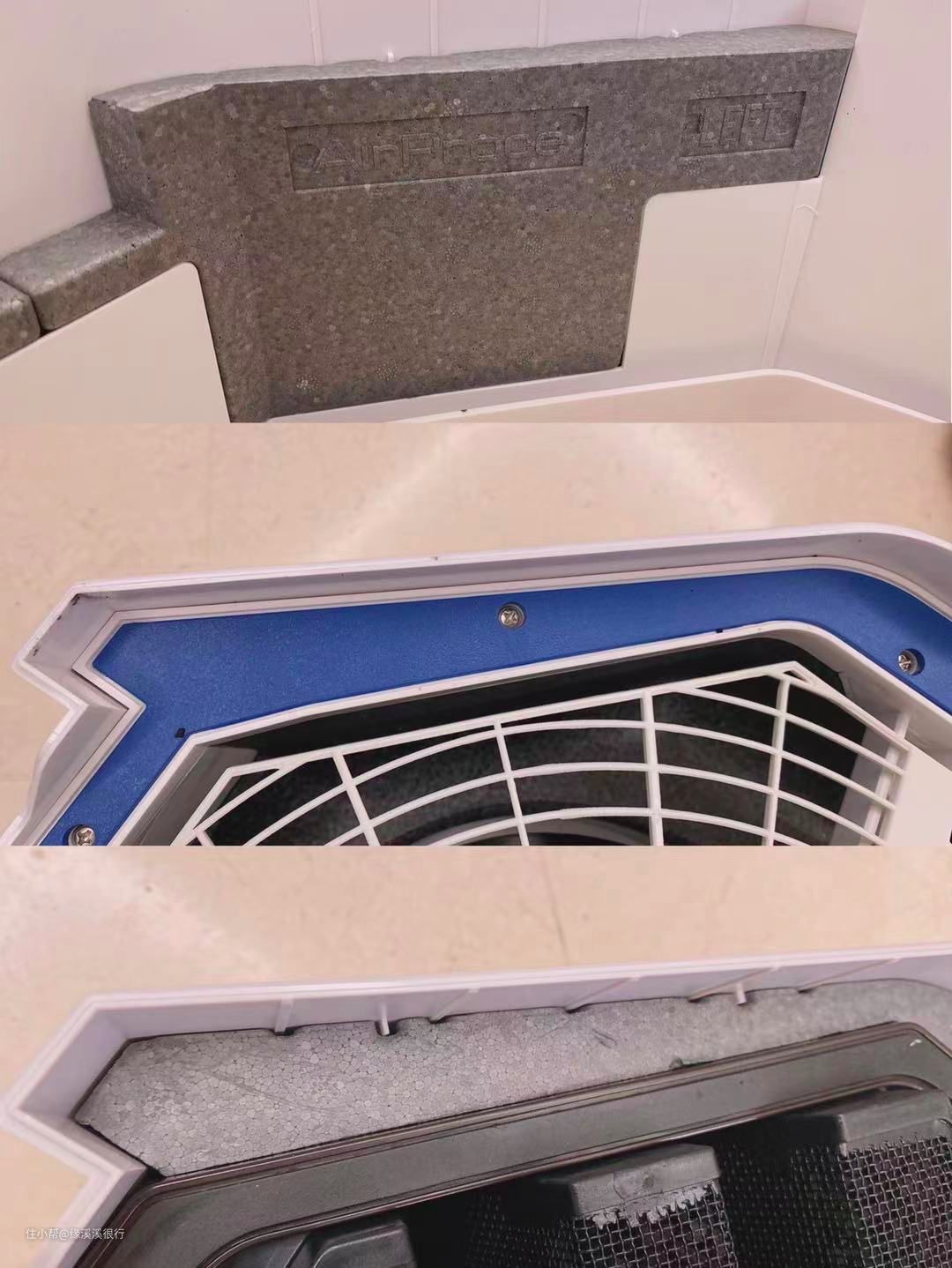 ▲之后,可以依次取下各模块,包括H13级HEPA高效滤网模块、TVOC中层滤网模块、风机模块、F9初效滤网模块和底座。