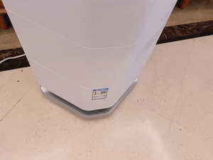 ▲这么大这么重的一台艾泊斯AI-600,如果单靠人搬动可是有点费劲,所以底座上安装有隐藏式万向轮,这样推拉起来就方便多了,也便于净化全家各个角落的空气。