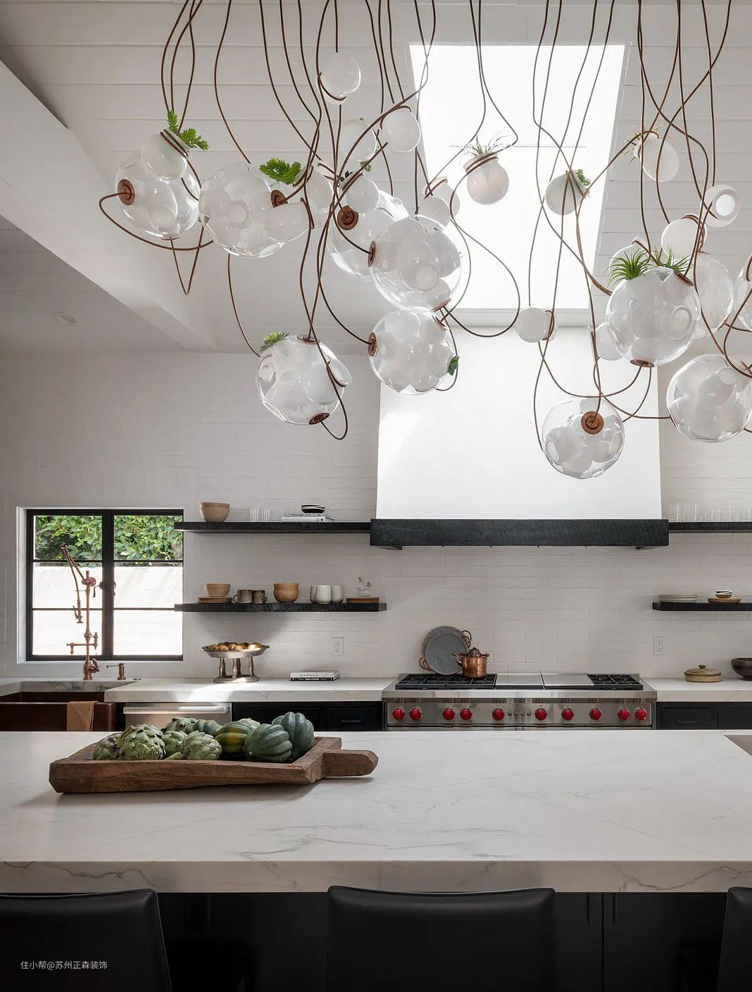 设计师利用空间的每一个角落,注重细节的设计,以化繁为简的理念,巧妙的达到了美观性与实用性的平衡。厨房中的平行置物架让更多的生活美好得以聚集在一起,营造出浓浓的生活与自然感。