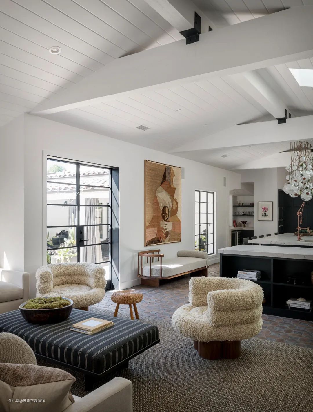 本案位于加利福尼亚州的一个乡村,Brentwood的名称和风格源自贝弗利山庄附近的一片极具特色的飞地。那是来自西方的空间氛围,不过家具的整体风格却无疑在诉说一个东方故事。