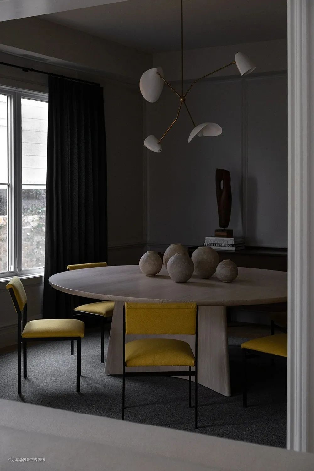 在雅灰色的极简空间中,通透大窗带来了充足的光线,展现了一个宁静空灵的世界,在观感上透出源源不断的艺术气息。
