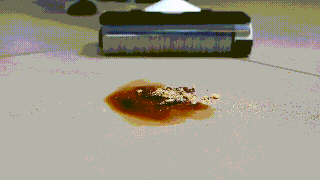 对于这种最麻烦的固液混合污渍,以往需要拖把和扫把轮番上阵,甚至是要用抹布手工清理。但对于芙万来说,却是“小菜一碟”。