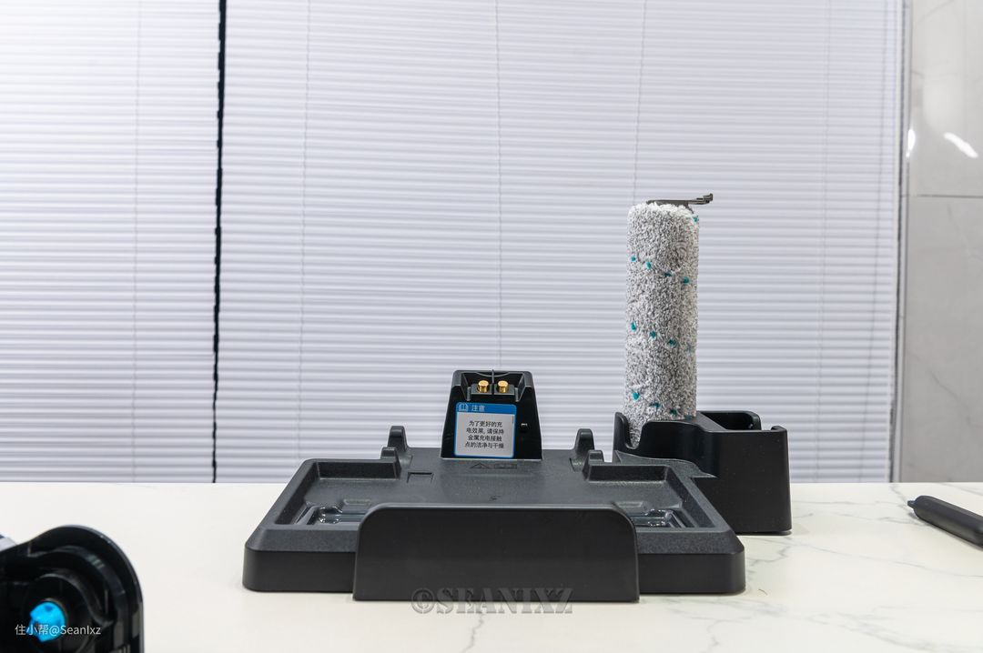 此外底座还带有专用的滚刷位置,清洗完残留有少量水分,在较长时间段未用的情况下可以取出放在滚刷座上晾干,不过这个位置实际上是安排给专用的地毯刷使用的,没有标配。中国家庭还是很少有大面积地毯的配置,如有需求可以另外购买。