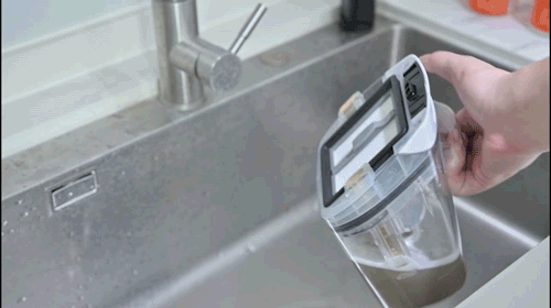 废水箱中部的网孔筛附件将固体垃圾和液体垃圾分离开来,固体可以直接倒垃圾桶,液体则可以倒入下水道,方便最后的垃圾倾倒。