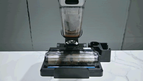 开启自清洁后,滚刷反转40秒,同时也在用水不停的冲刷滚刷,这里建议在水箱里加入热水和清洁剂来实现深度地面清洁与自清洁,水箱支持60℃左右的热水,可以加速溶解分离油垢。
