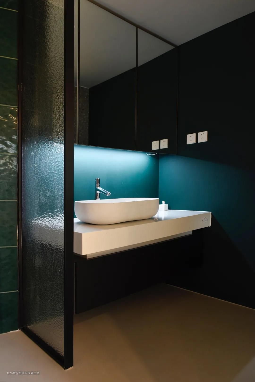 洗手台的墙面刷了同色系的防水哑光漆为主,提升了卫生间的层次感,看起来也不会有杂乱感。