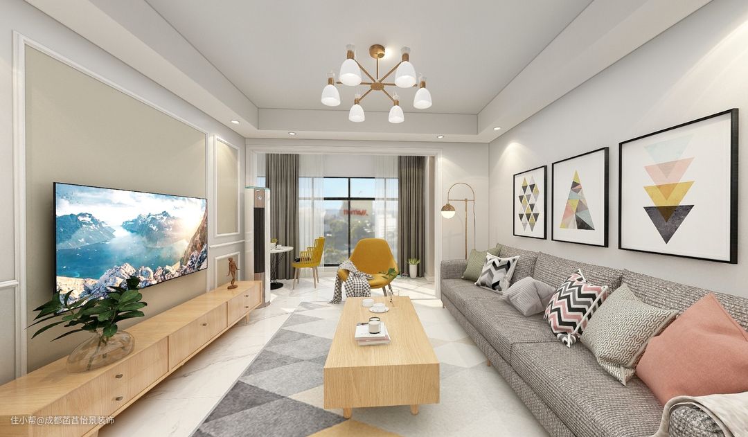 客厅外有一个超长的大阳台,连接着客厅与次卧,两面落地窗,为室内提供了充足的采光。