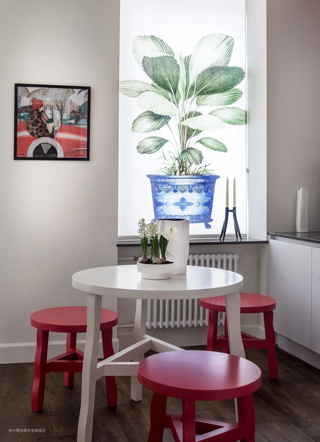 中国红+清新白是最百搭的搭配,明艳的中国红,在再简单不过的白色空间里,衬托到淋漓尽致▼