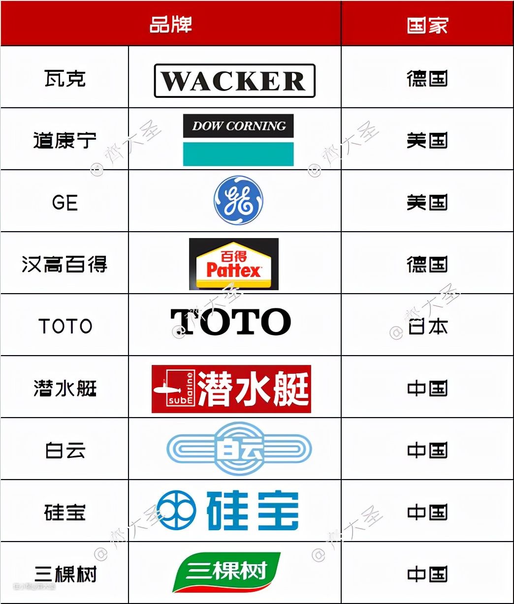 预算充足可选择瓦克、道康宁、GE、汉高百得;追求性价比的话还是要看我们国货的潜水艇、白云、硅宝、三棵树。