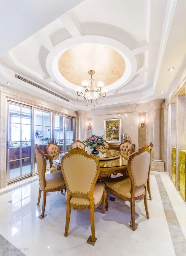 2、造型吊顶:比较传统的回字型,打圈灯带。四周装射灯。稍微复杂一点的,会做两层三层,圆形拱形,然后加石膏线条等等。这种一般适合层高高的,面积大的平层,别墅等。