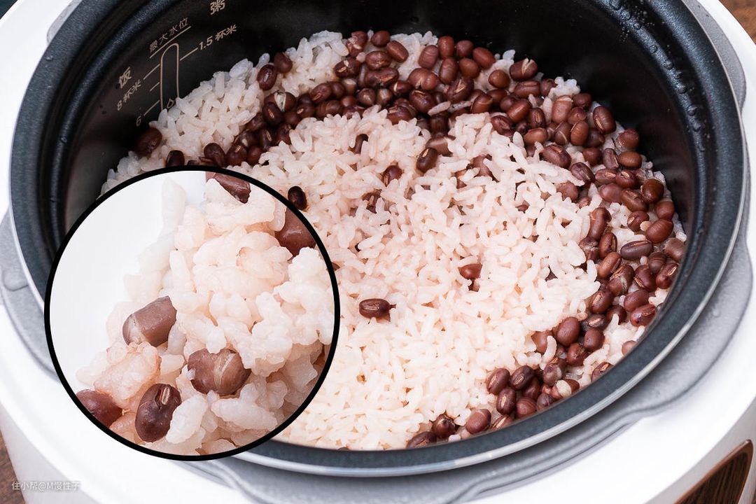 ▼第三几乎是电饭煲的通病了,煮豆饭豆子煮不开,即使提前泡过的豆子都不行,我用过几台电饭煲都有这个问题,如下是某马的有机红豆依然不容易煮开花。