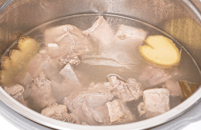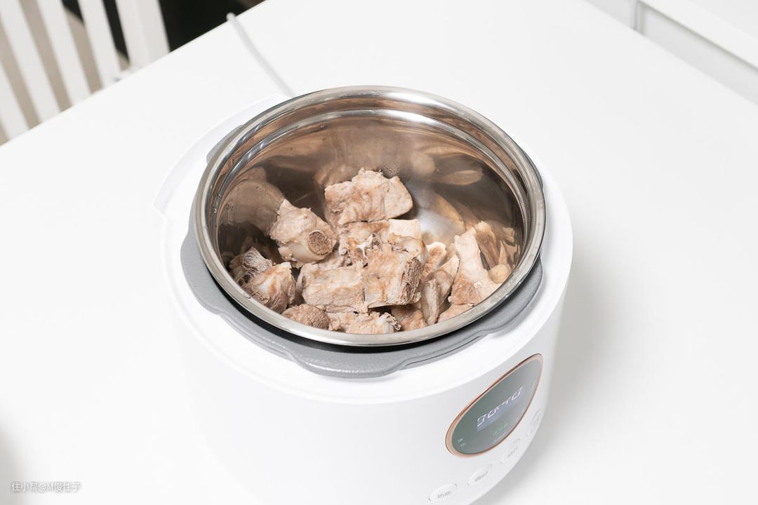 ▼先来红烧个排骨试试效果吧,把排骨先焯水去掉血沫后,放入压力锅中。