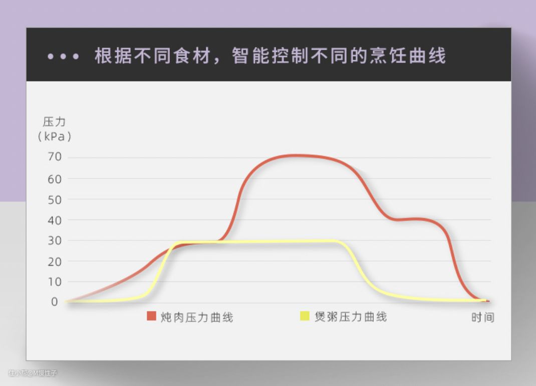 ▼看了介绍,每一档菜单不仅仅是时间长短的不同,对应的压力也有差异,比如炖肉的压力就较高,而煮粥就相对较低,智能化的配对不同的菜品。
