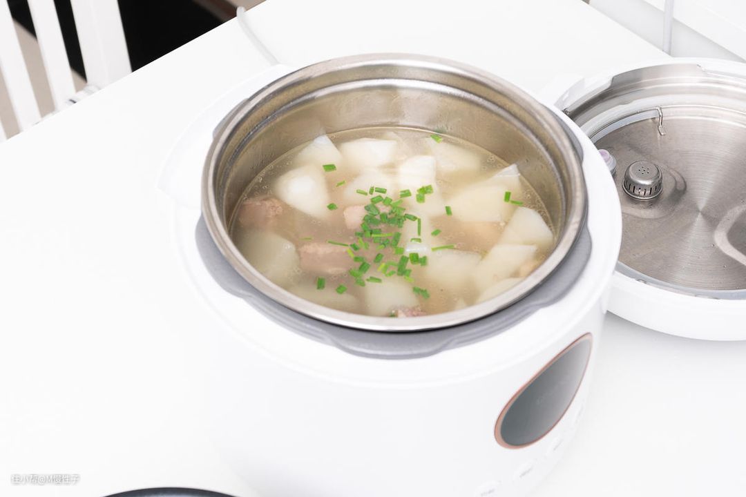 ▼之后排气加入切好的萝卜,再选择煲汤程序20分钟就完成啦。