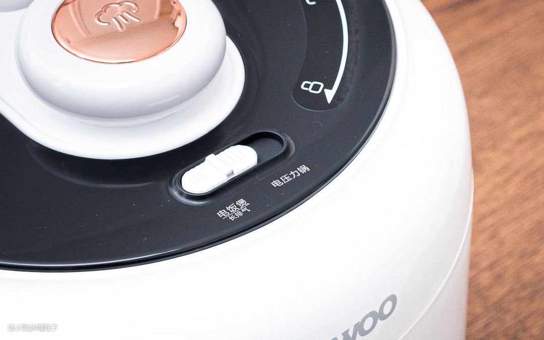 ▼顶部前侧是模式切换的拨钮,电饭煲模式和电压力锅模式,同时在电压力锅烹饪结束后,电饭煲模式也可以作为长排气功能使用。