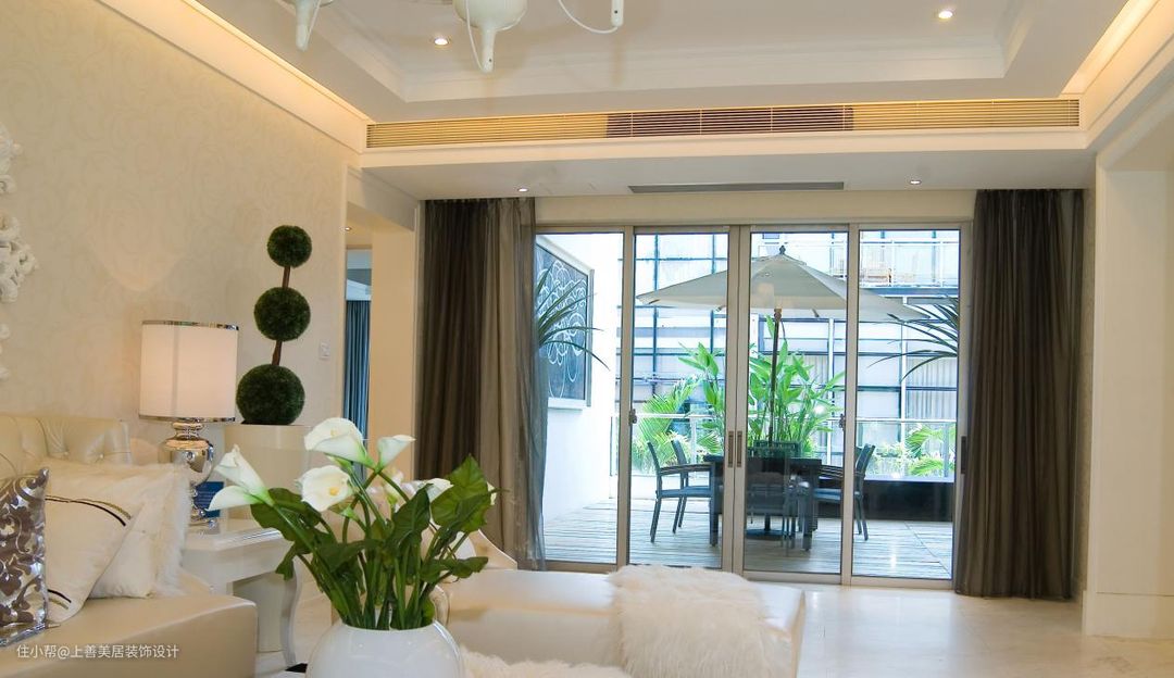 如图上的就是把空调隐藏在吊顶里然后设置出风口,就是把整个空调藏住,相对节省客厅的空间 ,而且也十分美观。对于小户型的家,这种设计真的是福音了。