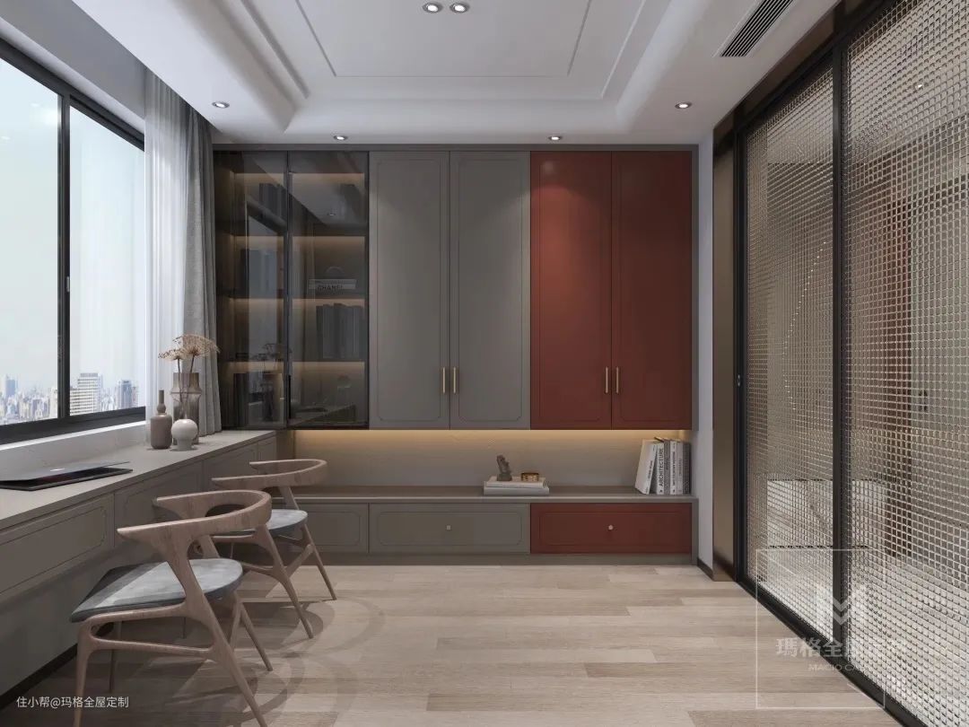 书房是一个静心休养的独立空间,陶冶性情的绝佳处所,这个空间设计尤为讲究。借由复古的家具、山水悠然的画幅、精致的茶具、瓷器和古玩等,可渲染出一种意境深远的氛围。