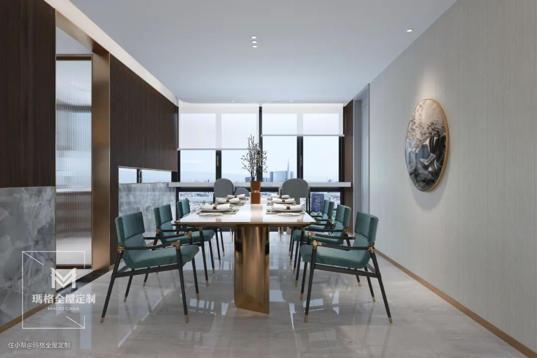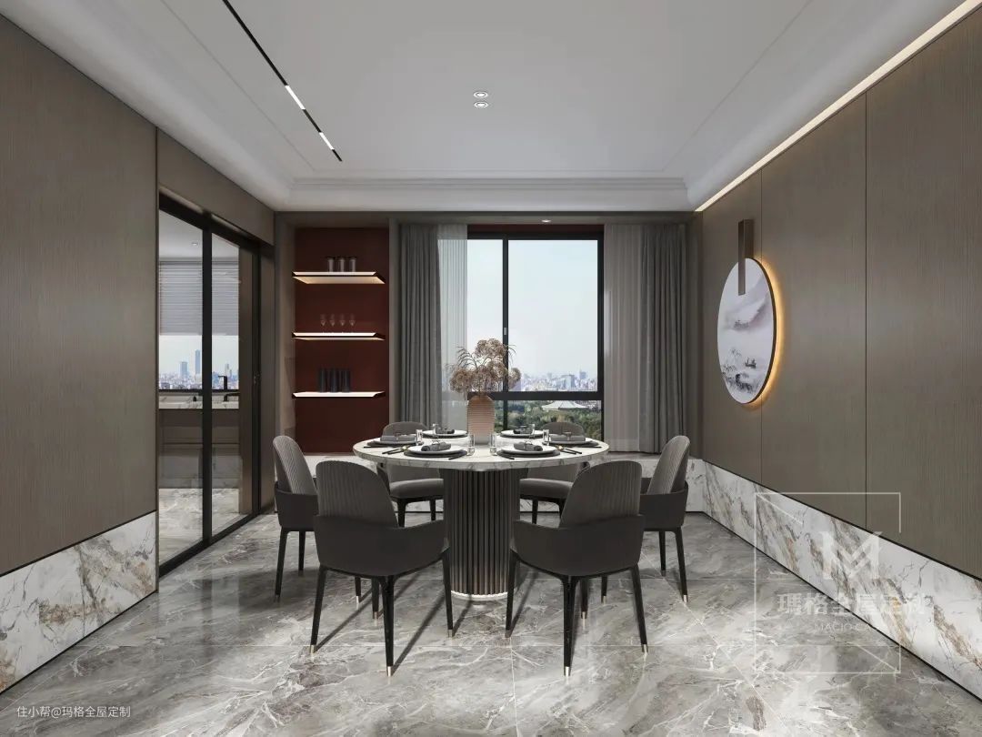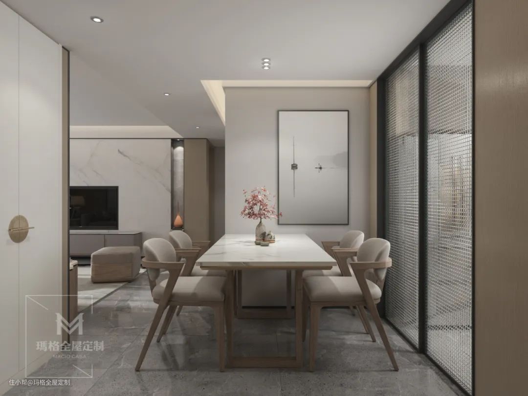 中国人注重团圆和情义,餐桌、餐椅设计有方有圆,寓意方圆有度,包容与凝聚力的气息自此而生。中式特定元素的加入,让餐厅透出淡淡的禅意与优雅,惬意舒适,美到骨子里。