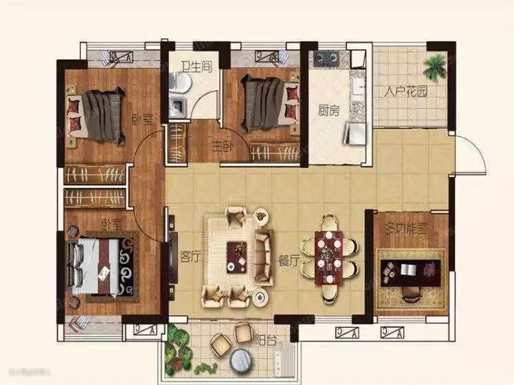 比如说我们看到的这个户型,布局非常紧凑,基本没有“垃圾”空间。