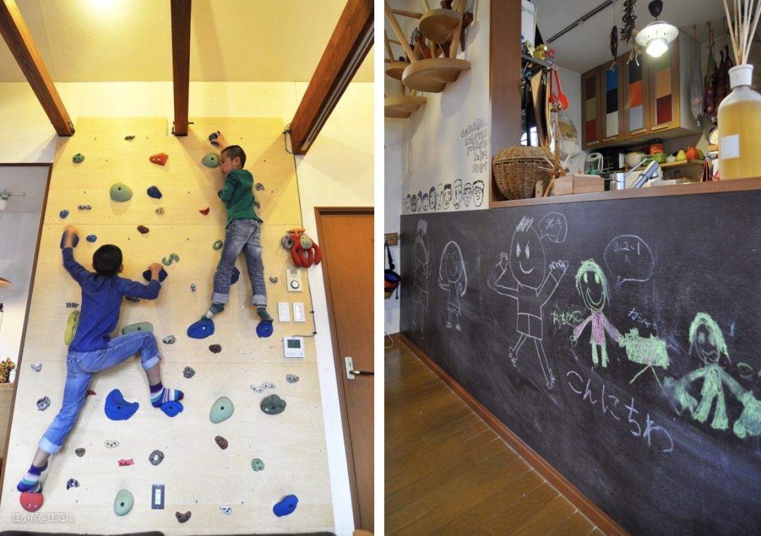 比如在客厅设置一个攀岩墙,方便活泼好动的孩子嬉戏打闹;