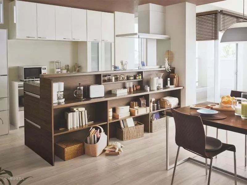 ▲ 拆掉了多余的墙面,还能收获一个收纳功能强大的岛台