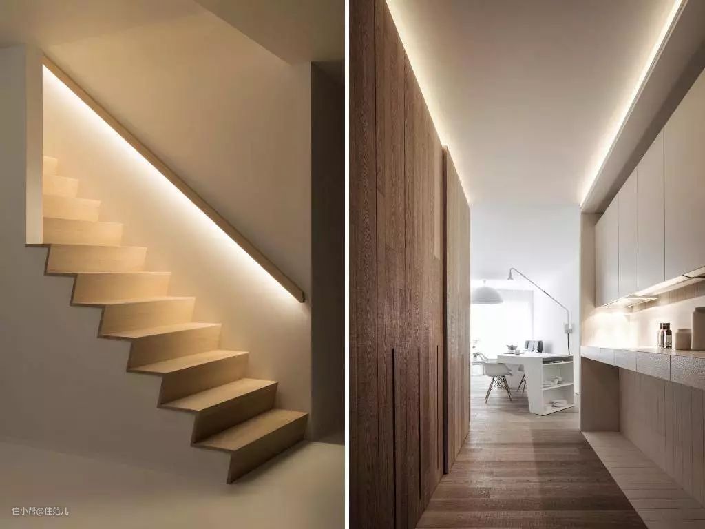 墙壁上下的柔和光源,也可以达到放大空间,让墙面有后退感的效果。