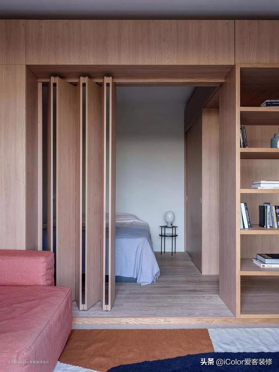 比如这套案例中,推开客厅的隐形门,就能步入主卧。