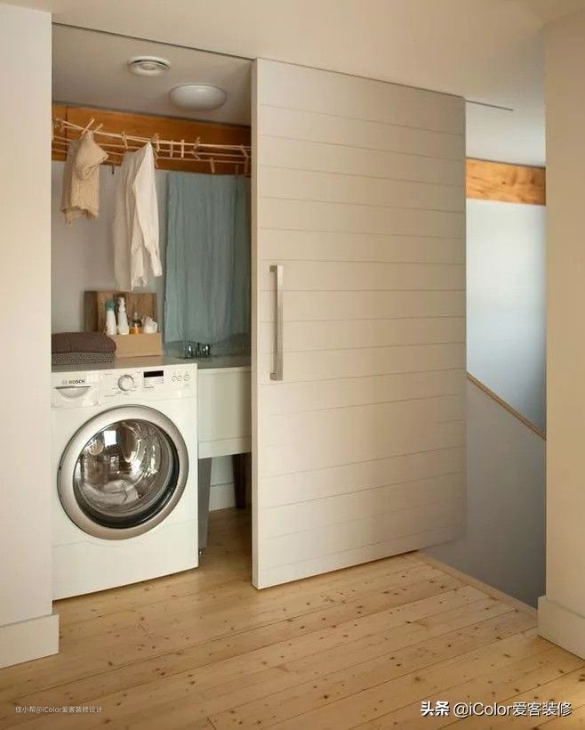 像这种带把手的移门其实很好移动,特别适合需要遮蔽的小空间,例如洗衣房,储藏间。