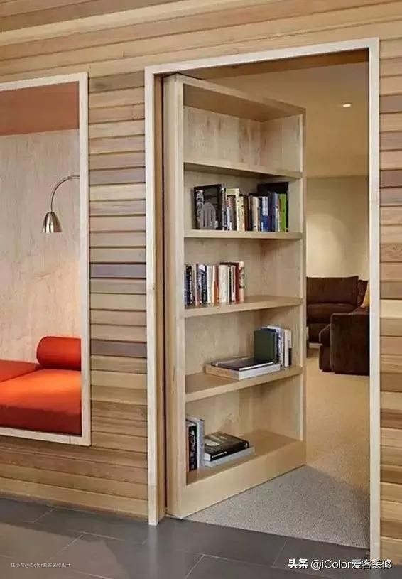 隐形门,从外观上看就像是一面墙或某一个装饰物或者是家具的一部分,既保证空间环境的协调,同时又隐藏了一个不想开放的私密空间。